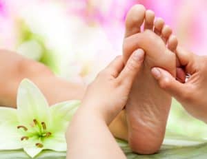 Confortablement installé sur une table de massage, après un nettoyage rafraîchissant avec des lingettes, le travail de réflexologie peut commencer. La réflexologue applique un mouvement rythmique et dynamique avec ses pouces sur le pied, une huile de massage additionnée selon les cas d’huiles essentielles est utilisée pour le traitement. Le travail consiste en une alternance de mouvements de "reptation", de "pression-rotation" et de lissage. Il se peut que certaines zones soient douloureuses. La pression est adaptée à votre ressenti et aux zones travaillées.